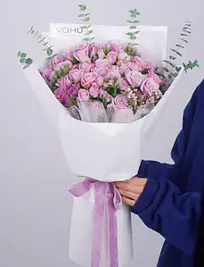 دسته گل شامل گلهای : گل رز گاردن ، گل داوودی